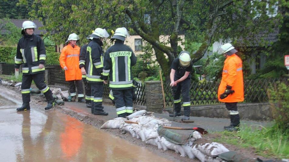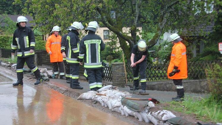 Unterstützung hatten die Feuerwehren von Einsatzkräften des THW, die zusammen mit den Wehrleuten mit Sandsäcken schlimmere Schäden zu verhindern versuchten.