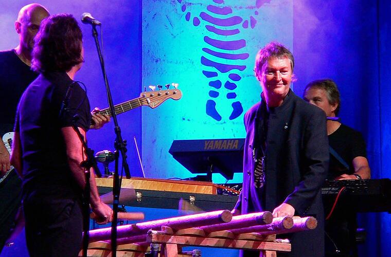 Kronach stand als zweite Station der aktuellen Jubiläumstournee auf dem Reiseplan, entsprechend frisch war auch noch der mittlerweile 67-jährige Maestro und seine Mannen; darunter mit Michael Braun (Blas- und Tasteninstrumente, Percussion, Gesang) und Peter Enderlein (Schlagzeug, Percussion), zwei weitere Mitglieder der Ur-Formation.