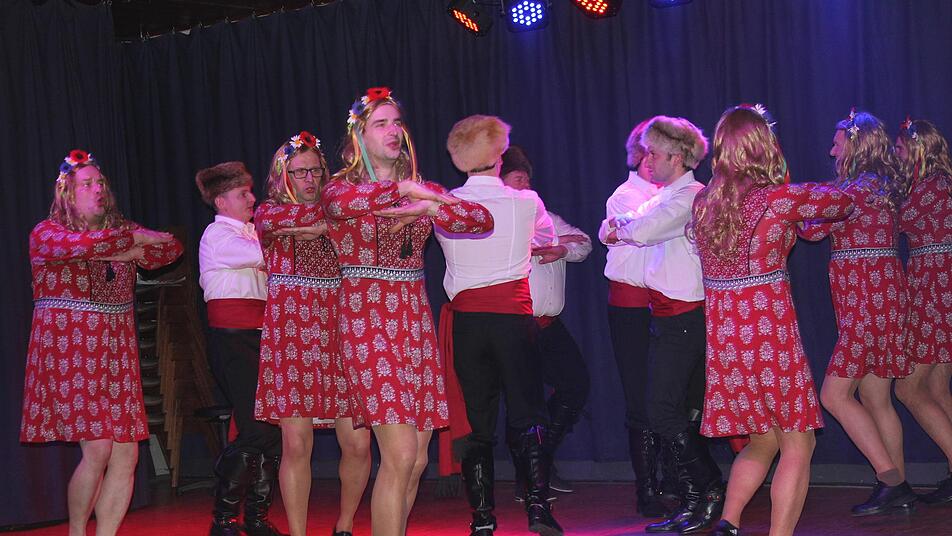 Frostig ging er bei Rosetta (Laura Wachter) und Klothilde (Madlen Brökelschen) zu, als sie erklärten, warum sie nun im Himmel sind. Ein dreifaches "Bochbich Helau" läutete die Pause mit einer ausgiebigen Tanzrunde. Im zweiten Teil erfuhren die Besucher, dass man mit Dirndl-Yoga - präsentiert von Lea Löffler, Theresia Reier und Laura Zipfel unter Anleitung von Sandra Löffler - eine neue Sportart gefunden hat, die sehr bewegungsintensiv sein kann.
