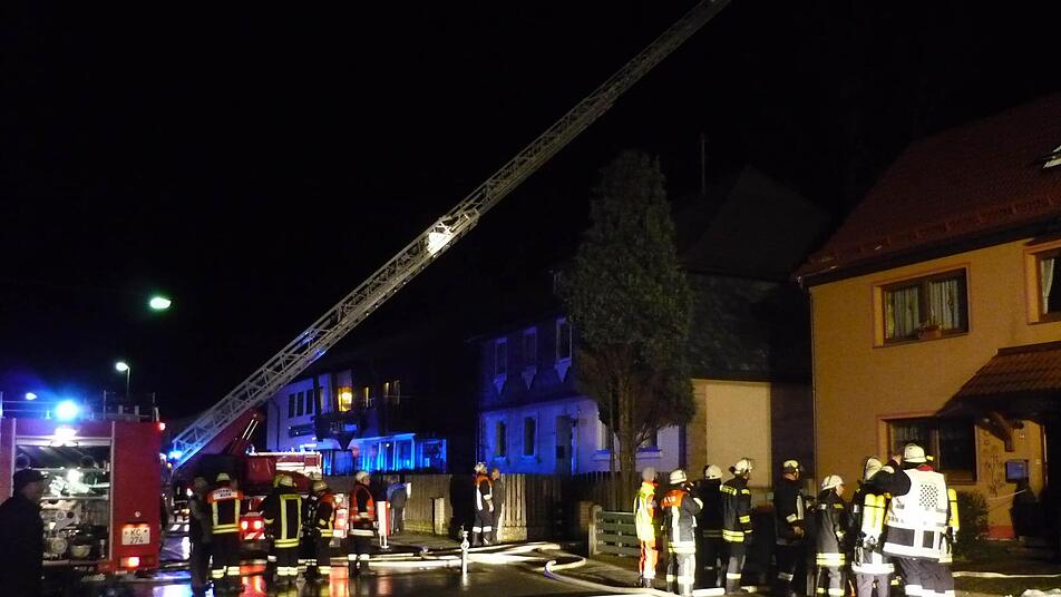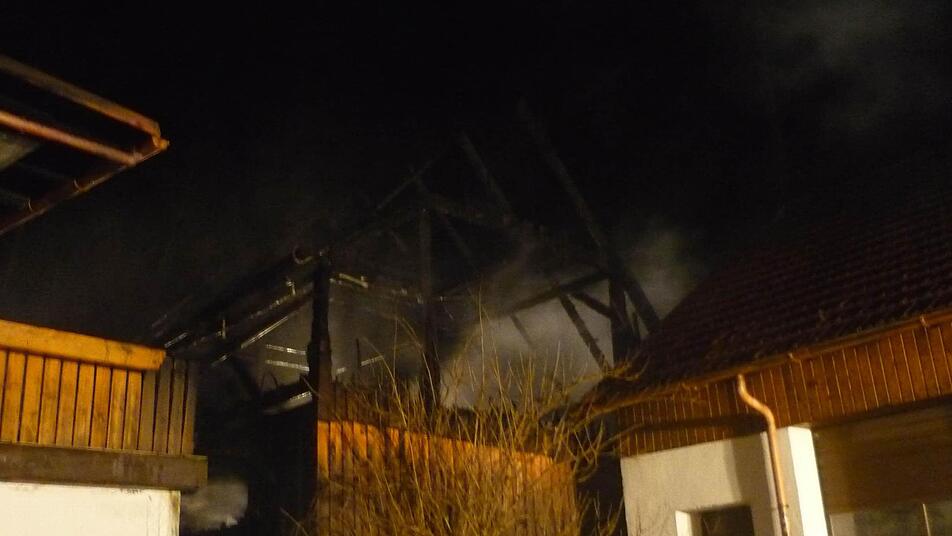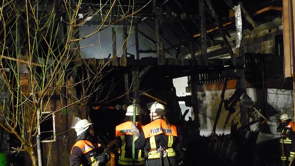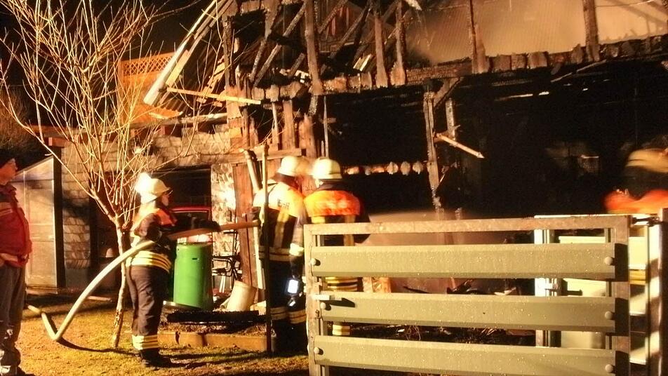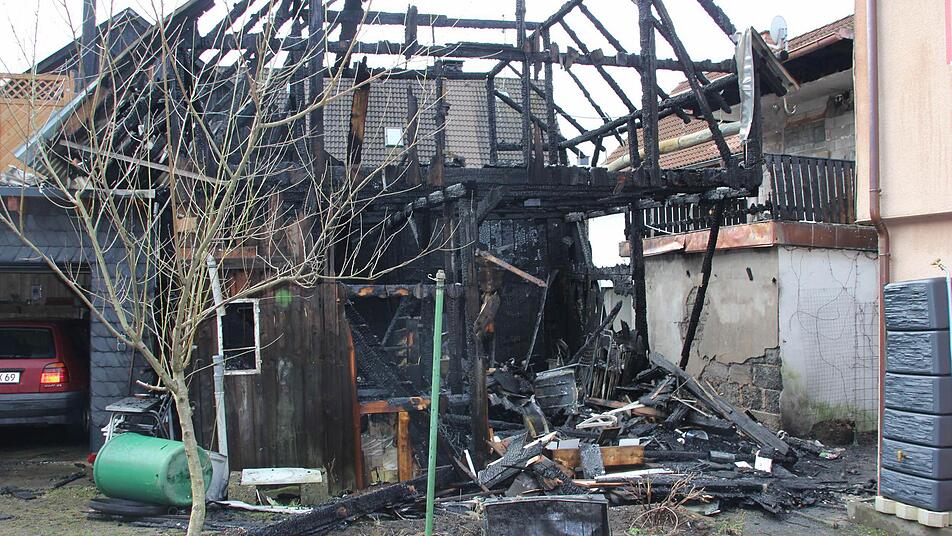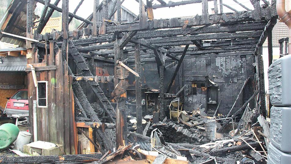 Großaufgebot der Retter Beim Eintreffen der ersten Rettungskräfte stand die sieben mal zehn Meter große Scheune bereits im Vollbrand. Obwohl ein Großaufgebot der Feuerwehren aus Steinwiesen, Neufang, Birnbaum, Zeyern, Wallenfels und Kronach (wegen der Drehleiter) zum Einsatz kam und das Feuer rasch unter Kontrolle hatte, brannte das Gebäude völlig nieder. Die Flammen hatten auch schon auf das benachbarte Wohnhaus übergegriffen.