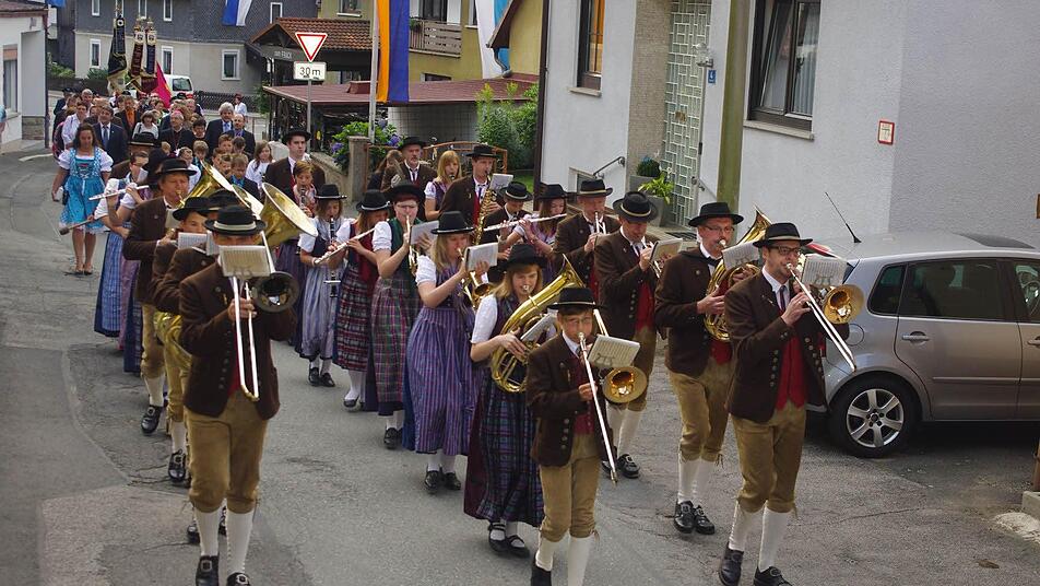Festlich geschmückte Häuser - Fahnen, die im Wind flattern: Nicht nur der Ort Steinberg hatte sich an diesem sonnigen Festtag "herausgeputzt", sondern auch die Bevölkerung. Die Jüngsten präsentierten ihre "Sonntags"-, die Kommunionkinder ihre Festtagskleidung. Der Musikverein Steinberg spielte festliche Blasmusik.