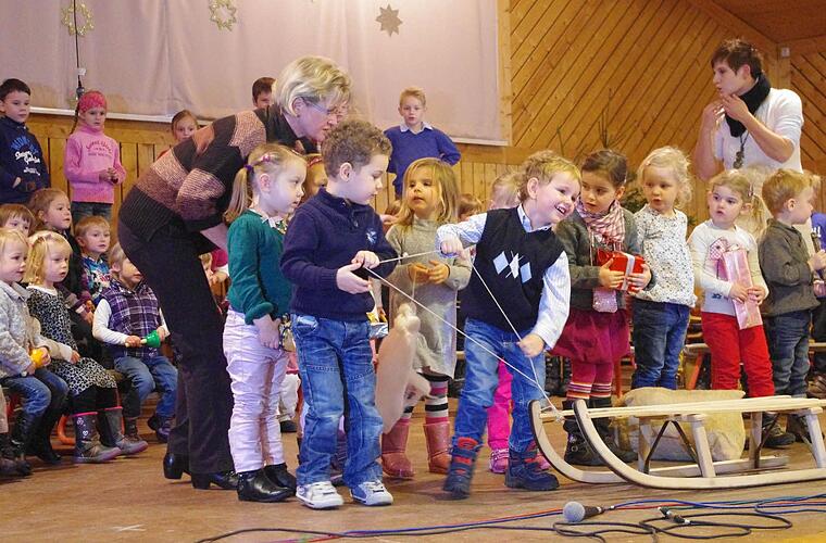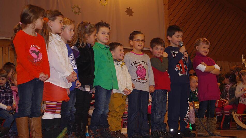 Vor dem Theater hatten die Jungen und Mädchen selbst mit einem weihnachtlichen Bühnenprogramm begeistert. Eine Stunde lang sangen, tanzten und schauspielerten sie voller Freude und Schwung. Dabei wurden alle einbezogen - von den Kleinsten bis zu den Großen, die im kommenden Jahr in die Schule kommen. Begleitet wurden sie auf der Gitarre von Gertrud Schubert sowie dem neunjährigen Johannes Backer.