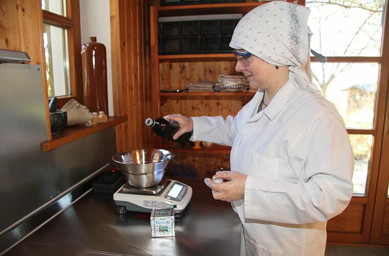 Jedes Rezept ist angemeldet Alle zwei Wochen produziert sie ihre Seifen und Badezusätze. Streng nach EU-Richtlinien.