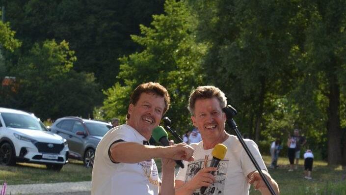 Herta und Gerhard Burkert Mazur ist es wieder gelungen, eine fabelhafte Show mit Künstlern zusammenzustellen, die alle eines gemeinsam hatten: Sie verzichteten auf eine Gage zugunsten der Benefizaktion "1000 Herzen für Kronach". Und manche nahmen dafür einen einfachen Anfahrtsweg von über 300 Kilometern in Kauf wie "Kapfer & Kapfer" aus Mertingen, das Duo "Edelmeer" (Sabine und Thomas) aus Fahrenzhausen oder auch der Rock-Pop- und Schlagerstar Mike van Hyke, der unmittelbar nach seinem Auftritt um 16 Uhr die Reise nach München ins Fernsehstudio antrat. Dort war er für 18.30 Uhr zu einem Vorbereitungsgespräch für die ARD-Fernsehsendung "Immer wieder sonntags" eingeladen, bei der er am kommenden Sonntag, 28. Juli, als Gast von Stefan Mross auftreten wird. Kristin Rempt aus Sonnefeld zeigte ihre vielfache Begabung als Schlagerstar (Gewinnerin des Alpen-Grand-Prix) und Moderatorin, sie ist seit vielen Jahren immer für "1000 Herzen" zur Stelle.