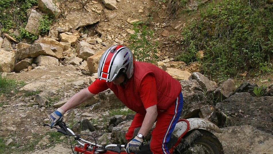 Schon lässt Norbert Hempfling (48) seine Fantic aus dem Jahr 1982 an und begibt sich auf die Strecke mit dem gelben Pfeil. Denn die möchte er heute bewältigen. "Ich fahre Trial seit 1980 - so oft es eben geht", erzählt Hempfling. Fünf Maschinen hat er zu Hause, aber eigentlich ist er am liebsten mit seiner Fantic unterwegs.