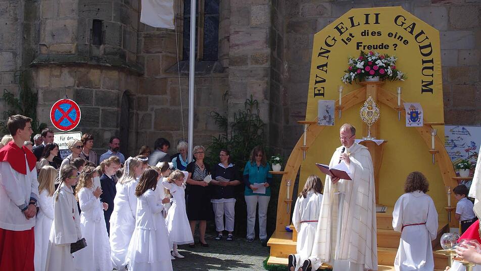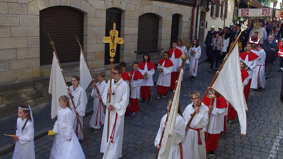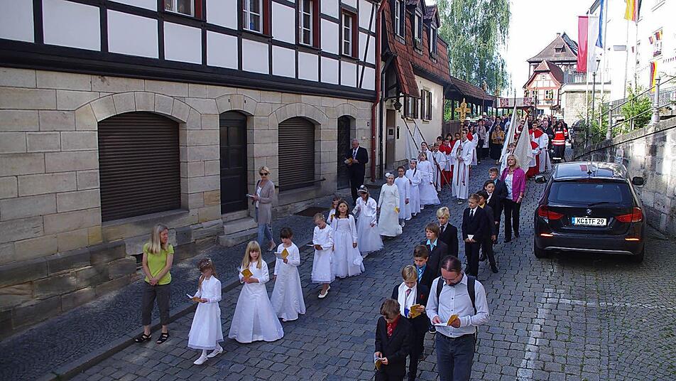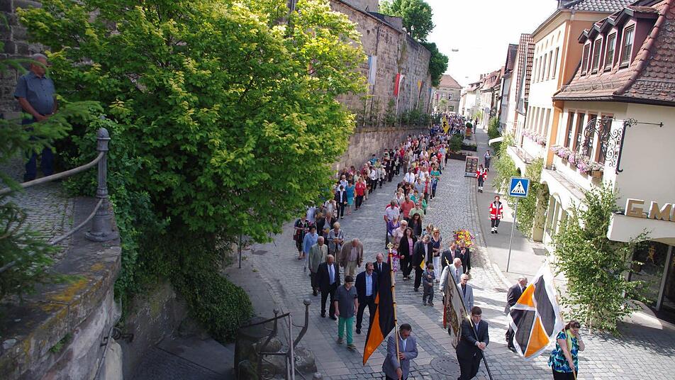 Flatternde Fahnen, geschmückte Häuser, verzierte Altäre - Kronach hat sich am Donnerstag "herausgeputzt". Im Jahreskreis der Kirchenfeste hat Fronleichnam einen besonderen Stellenwert.