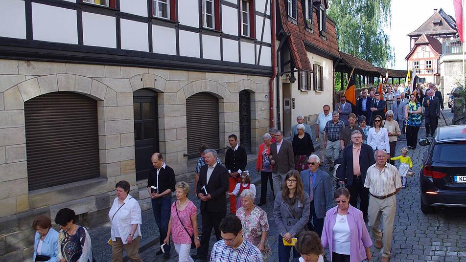Ein Zeichen der Ökumene Auch heuer beteiligten sich wieder zahlreiche evangelische Christen sowie Gläubige anderer Konfessionen an der Prozession. Ein schönes Zeichen der Ökumene ist es auch, dass der zweite Altar alljährlich bei der Christuskirche aufgebaut ist. Für die liturgische Feier trug dort die "Charismatische Erneuerung" Kronach Gebete und Fürbitten vor. Ihre Gedanken stellten sie unter das Motto "Wie Christus Brücken bauen". Brücken seien nie Werke eines Einzelnen, sondern von vielen, appellierten sie.