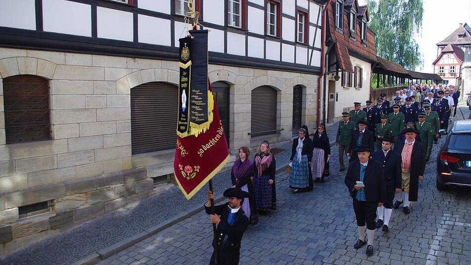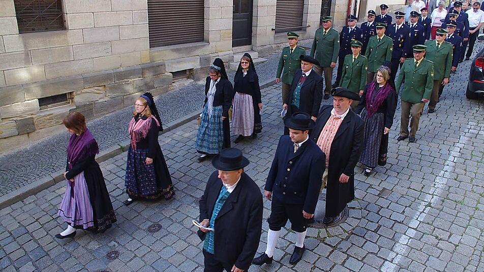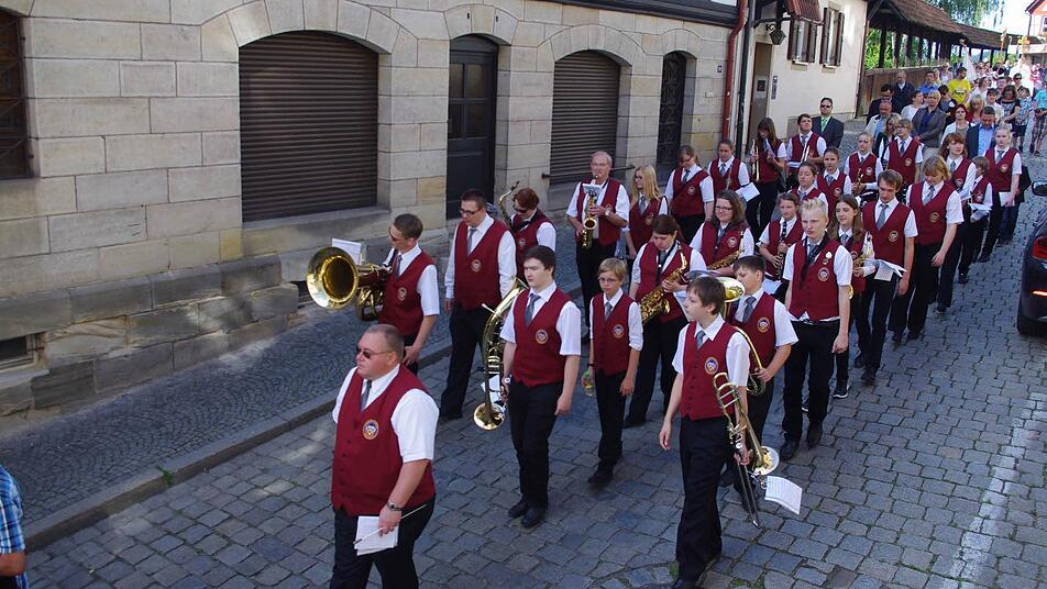 An der Prozession nahmen Vereine mit Fahnenabordnungen, die Kommunionkinder, die Feuerwehr, das BRK und die Polizei sowie Bürgermeister Wolfgang Beiergrößlein und die Stadträte teil. Ihr Weg führte die Gläubigen beginnend vom Kirchplatz vor der Stadtpfarrkirche zunächst über die Amtsgerichtsstraße zum Rathausplatz, wo die Eucharistie-Feier stattfand.