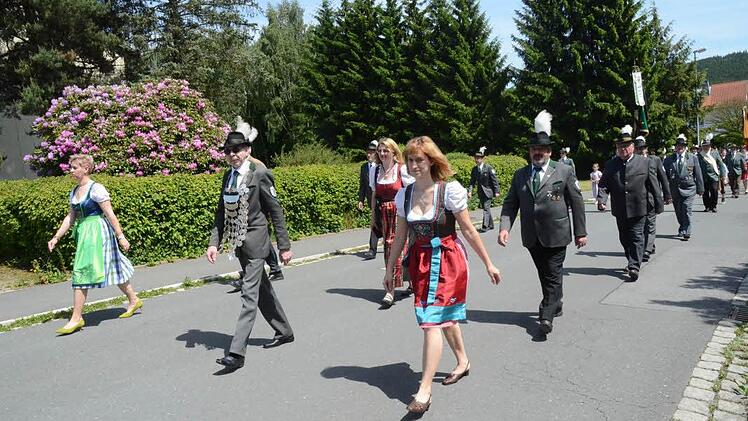 Die Zimmerstutzen Schützengesellschaft Pressig feierte. Die Nachbarvereine nahmen am bunten Zug teil. Heute Abend werden der Schützenkönig und die Pokalsieger gekürt.