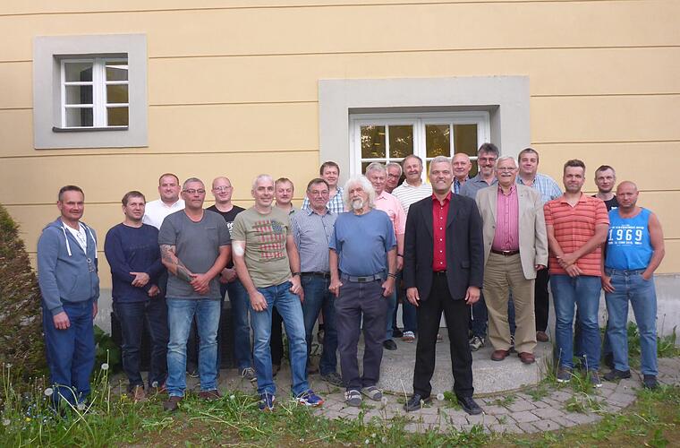 Sogleich freute sich Ehrhardt auch, zu Beginn der Veranstaltung einen neuen Feldgeschworenen, Martin Rentsch aus Lauenhain, vereidigen zu können. Er wies auf die Verschwiegenheitspflicht und Bewahrung des Siebenergeheimnisses durch die Eidesform auf Lebenszeit hin. Der Bürgermeister regte auch an, solche Fortbildungen in praktischer Form im Außendienst durchzuführen. Gerade hierüber konnte der älteste anwesende "Grenzvermesser" der Stadt Ludwigsstadt, der 83- jährige "Tui" (Reinhard) Schmitt etliche Anekdoten erzählen. Er war schon dabei, als man in den 1960er Jahren an der DDR-Grenze Vermessungen vornehmen musste und ihm dabei Volksarmee mit Maschinenpistole gegenüberstand. Er war damals zugegen als Stacheldraht und Minenfeld als Grenze aufgebaut wurden und ebenso als nach der Wiedervereinigung 1990 der Abbau der Anlagen erfolgte und auch hier die Feldgeschworenen gefragt waren.