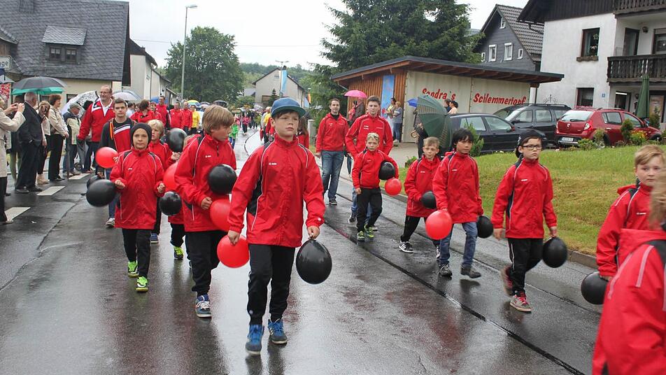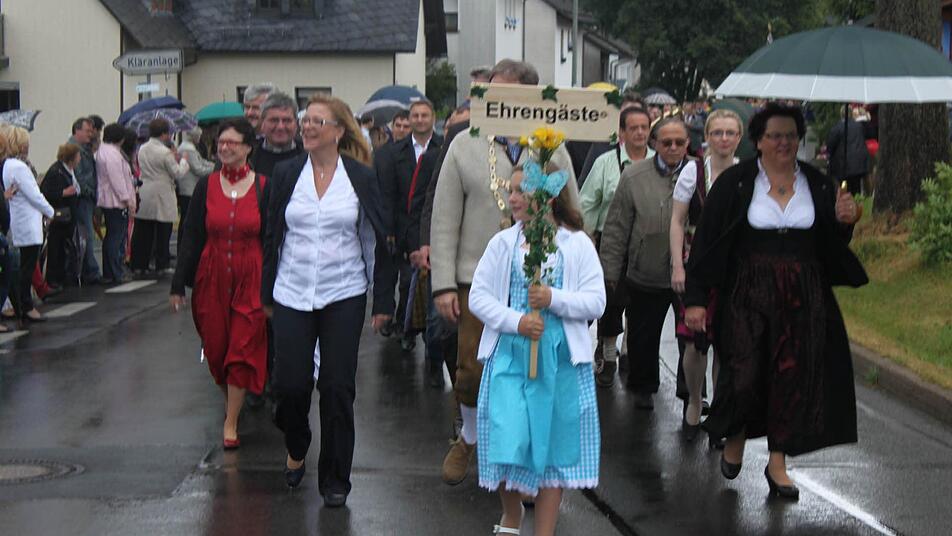 Die Steinbacher feierten diesmal in Hirschfeld. Der Regen störte sie dabei nicht.