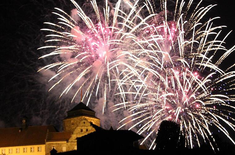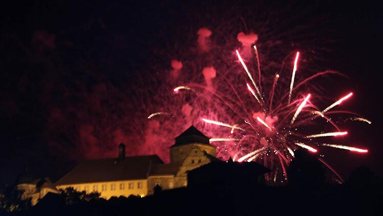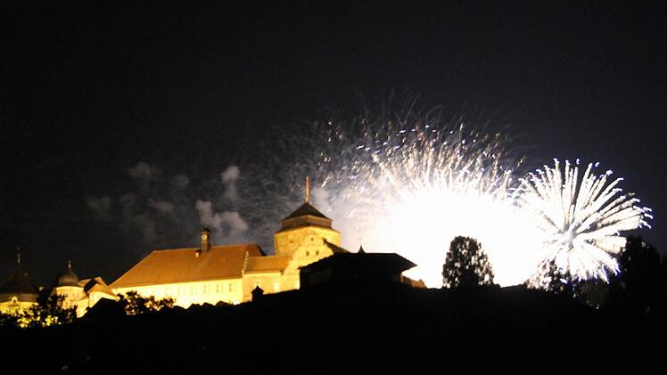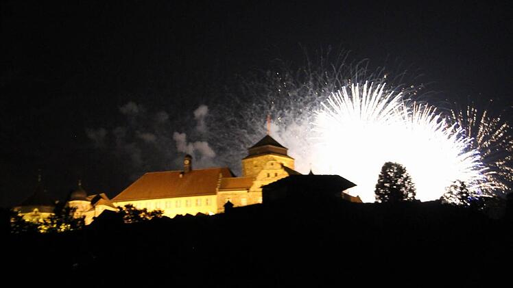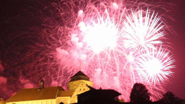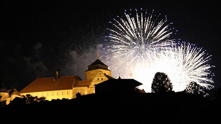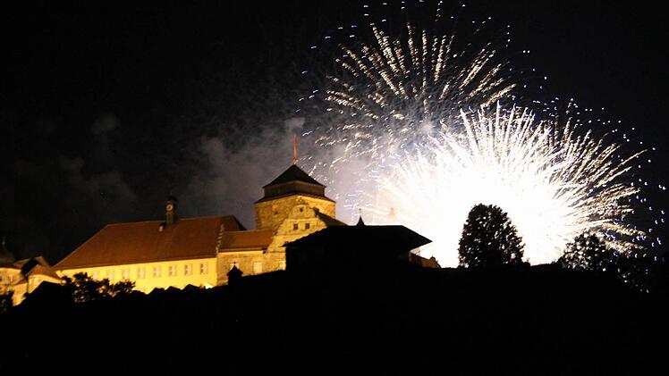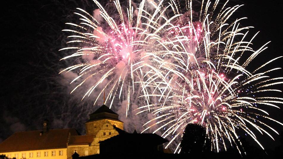 Bunte Lichtblitze, langsam herabfallende, glühende Kugeln, zarte Leuchtstreifen und dreifarbige Regenbogen verwandelten den Nachthimmel über der Festung Rosenberg am Donnerstagabend in ein Lichtermeer. Mit dem Brillantfeuerwerk erreichte das Freischießen auf seiner Zielgeraden einen seiner traditionellen Höhepunkte. Zahlreiche Menschen waren aus nah und fern auf den Festplatz gekommen, um dieses Schauspiel zu verfolgen. Aber auch in den Straßen der Kreisstadt versammelten sich die Schaulustigen überall, um ihren Blick auf die farbigen Wogen über dem steinernen Wahrzeichen zu richten.