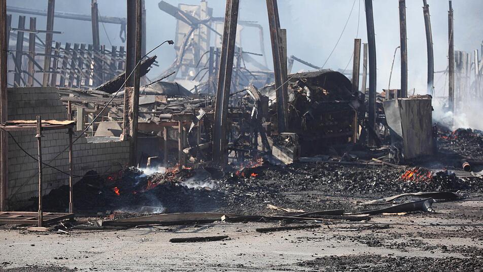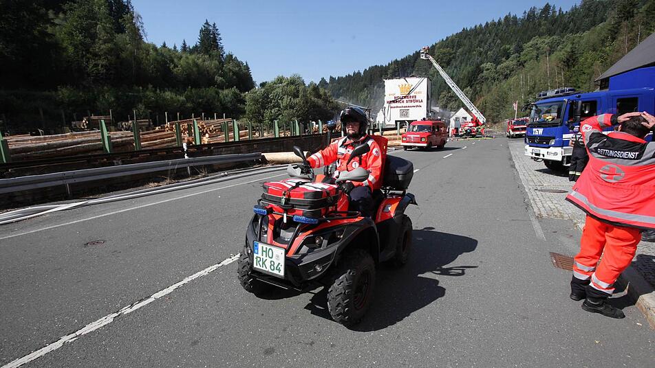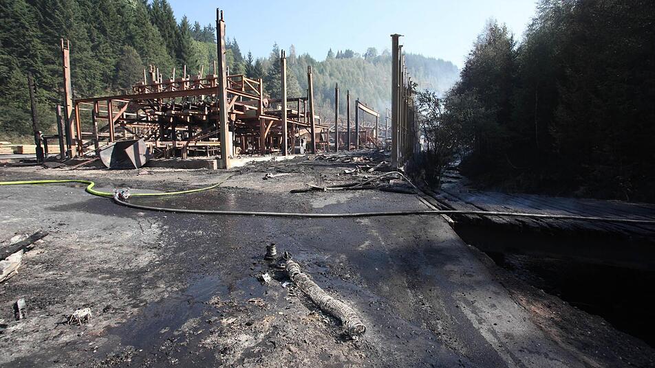 Da das Sägewerk mit seinen großen Hallen nicht zu halten gewesen sei - "wir mussten das Sägewerk kontrolliert abbrennen lassen" -, habe man sich auf den Schutz der umliegenden Häuser beschränken müssen. Der Wald am Steilhang sei ebenfalls in Brand geraten. Dorthin zu gelangen, sei für die Feuerwehrleute nur mit drei bis vier Steckleitern möglich gewesen.
