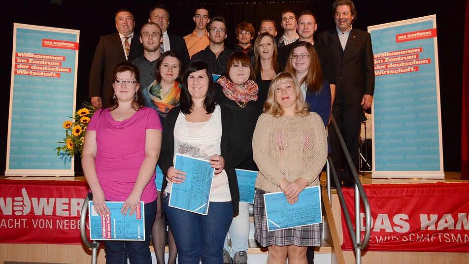 Januar 2013 waren 1162 Betriebe aus dem Landkreis Kronach in der Handwerksrolle eingetragen, die über 5700 Arbeitsplätze bieten und 355 Auszubildende erhalten eine solide Ausbildung. "Allein in diesem Jahr wurden wieder über 120 neue Ausbildungsverträge abgeschlossen", informierte Schneider. An der diesjährigen Abschlussprüfung nahmen 54 Prüflinge teil. 44 davon waren erfolgreich. Für sie hat sich der Einsatz und Fleiß gelohnt, denn sie bauen auf einer soliden Ausbildung auf und haben alle Möglichkeiten, sich über Weiterbildung weiter nach oben zu arbeiten. Doch auch die Teilnahme am öffentlichen Leben ist für Handwerker ein wichtiges Element in der Gesellschaft. So ermunterte er nicht nur zur Weiterbildung im lebenslangen Lernen, sondern auch Verantwortung in der Gesellschaft in Ehrenämtern, in Familien und natürlich in Betrieben zu übernehmen.