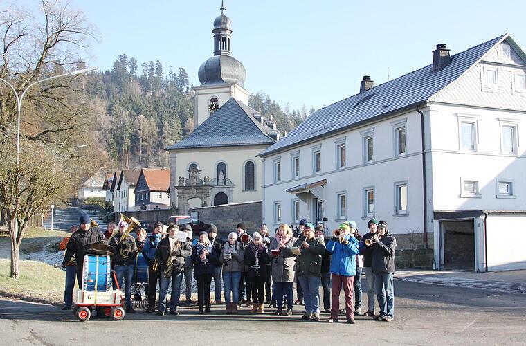 Es ist ein schöner Brauch, dass viele Musikkapellen aus dem Frankenwald an Silvester und am Neujahrstag die Bewohner mit klingenden Grüßen erfreuen. In Stockheim zogen die Musikanten bei fast frühlingshaften Temperaturen von Haus zu Haus und gaben jeweils ein zünftiges "Ständela" zum Besten. Trotz regnerischer Einlagen waren sie bei guter Laune. Zur Freude der Bewohner des Alten- und Pflegeheims "Haßlachblick" gab es sogar zwei musikalische Einlagen. Ein finanzielles Scherflein von den Bürgern war der Lohn für diese klingenden Neujahrsgrüße in altgewohnter Weise.