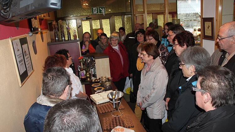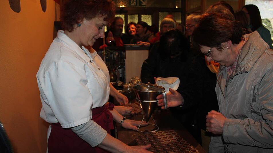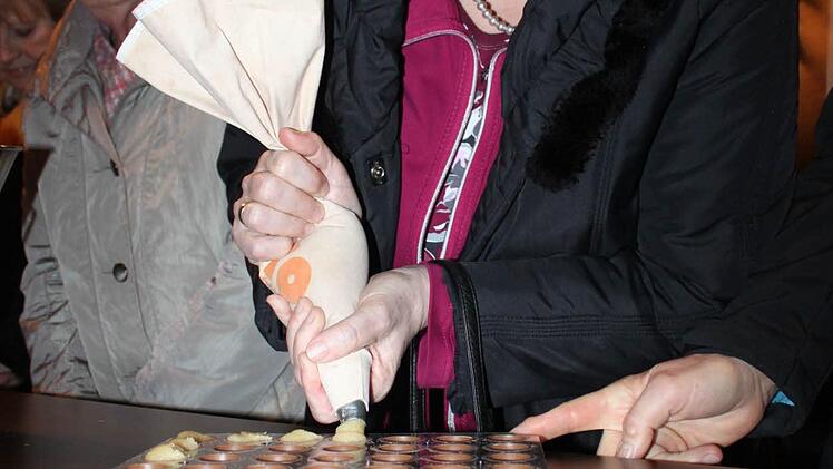 In der Pralinenmanufaktur erhalten sie einen Einblick in die Herstellung von Pralinen: Silvia Schramm und Nicole Ulbrich erklären, dass jede einzelne Praline in Handarbeit hergestellt wird.