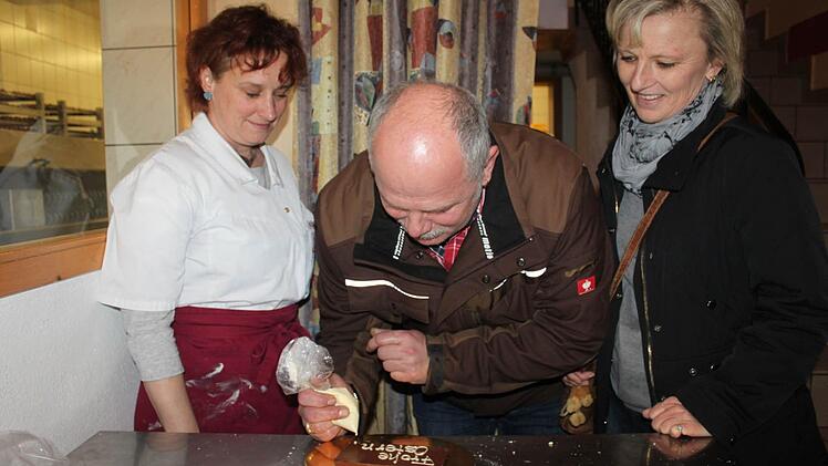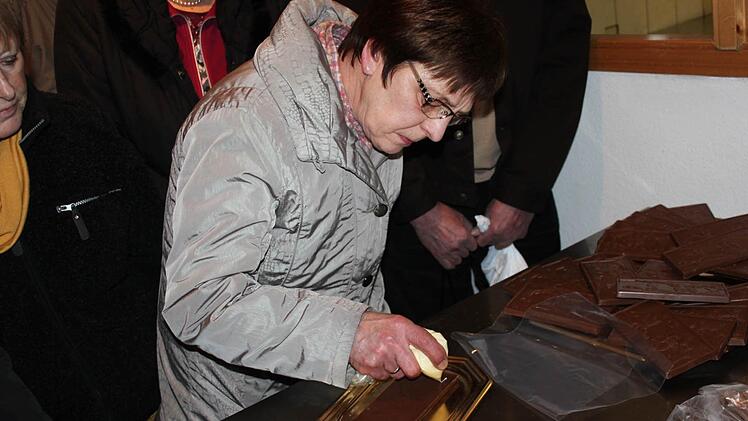 Spannend wird es, als die Gewinner selbst ihre eigene Tafel Schokolade mit weißer Masse beschriften dürfen. Dabei wird deutlich, dass unter anderen eine ruhige Hand erforderlich ist.