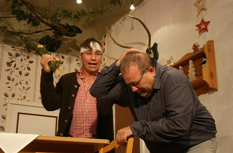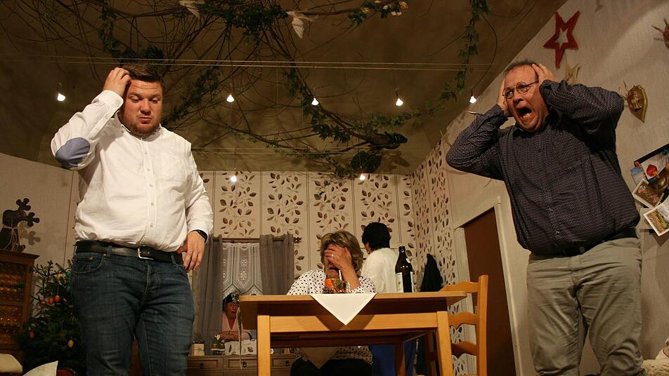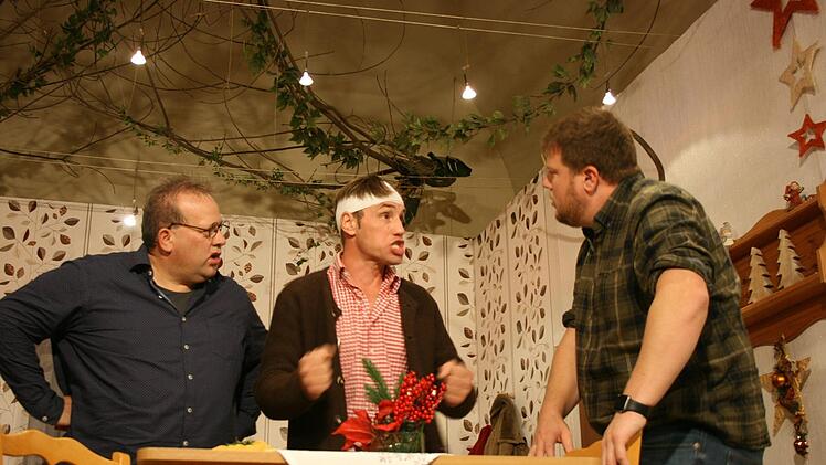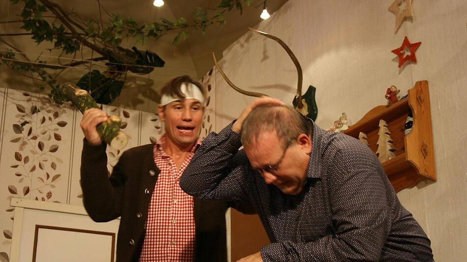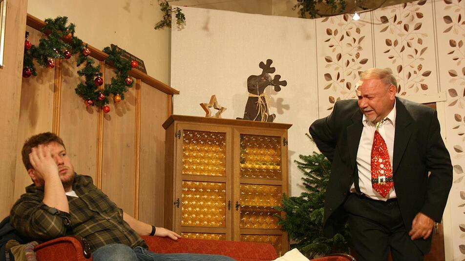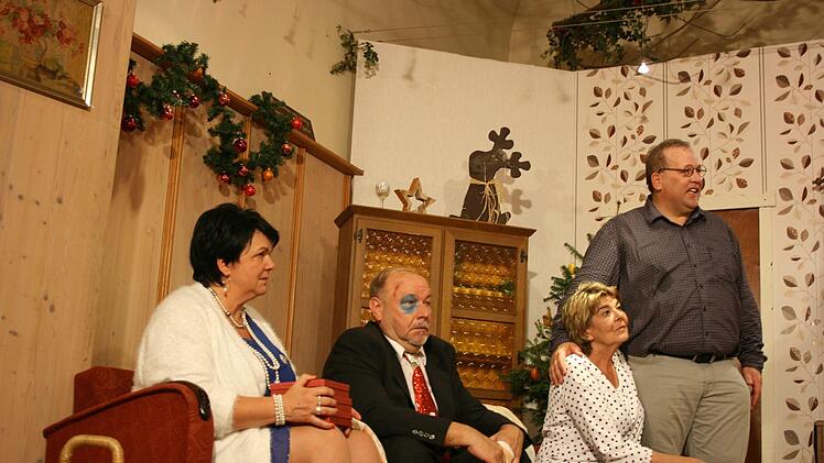 In diesem Schwank von Bernd Gombold schien es nicht ungewöhnlich, Weihnachten zu verschieben, bis "Mutter widde normal is" und "halb gschlochta Stollhousn" dabei durch die Gegend rennen. Und es war normal, dass ein "trotteliges Kalb" plötzlich zum "schnaubenden Zuchtstier" wurde.