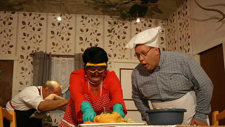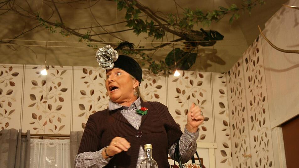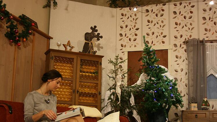 Die Truppe ließ wirklich keinen Witz aus, keine Lachträne ungeweint und kein Klischee beiseite. Große Auftritte hatten hier nicht nur die Laiendarsteller, sondern auch ein Weihnachtsbaum und eine Gans. Der Baum, der wahlweise blinkte, mit Ostereiern behängt wurde oder gar mit Schlüpfern und BHs, hielt Familie Maier ganz schön auf Trab. Er wurde Gassi geführt und in Bewegung gehalten, "damit er nije alla Noudln veliert".