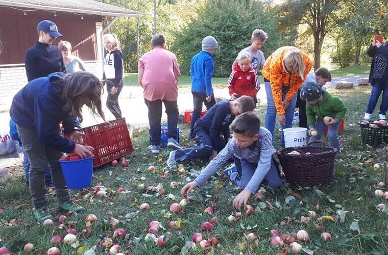 Die Hilfe der Eltern war dieses Mal streng verboten. Es ging um Schnelligkeit und Gewicht. Als der letzte Apfel von der Wiese gelesen war, stoppte man die Uhr. 6 Minuten und 24 Sekunden! Eine starke Leistung!