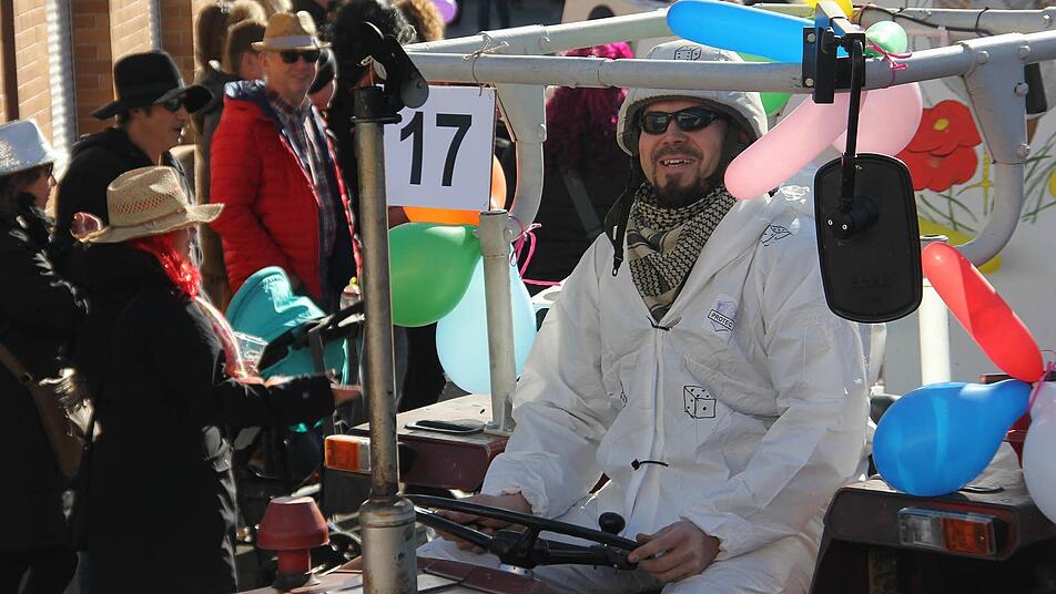 Die Gemeinde platzte am Sonntag aus allen Nähten und der Ort stand buchstäblich Kopf, als die Narren ihr Finale einläuteten. Um 13.30 Uhr startete der bunte Gaudiwurm mit über 20 Motivwagen und Fußgruppen. Mit dabei waren unter anderem die Juniorengarde, die Prinzengarde, die Hexen aus Johannisthal, die Nägler Dorfgemeinschaft, die Hummenberger Nachbarn, der Kindergarten Spatzennest, das Jugendorchester und weitere Vereine. Zu sehen gab es bunte Kostüme, beeindruckende Masken, Gardemädchen, bemalte Wagen und Hexen.