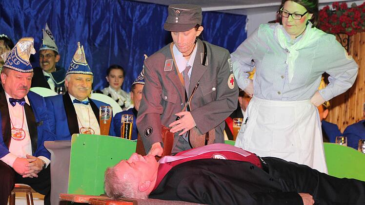 Beim ersten Büttenabend kamen auch die Kronacher Narren auf die Bühne. "Ihr habt große Schnitzel", freute sich deren Präsident Martin Panzer. "Sexy war ich schon vor der Macht", demonstrierte Bürgermeister Wolfgang Beiergrößlein (FW), dass nicht erst Macht sexy macht.