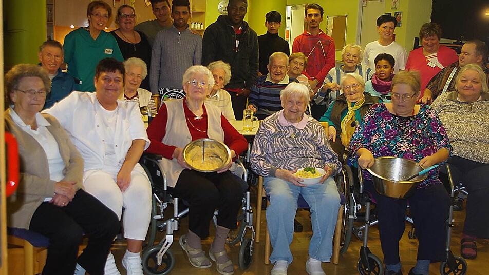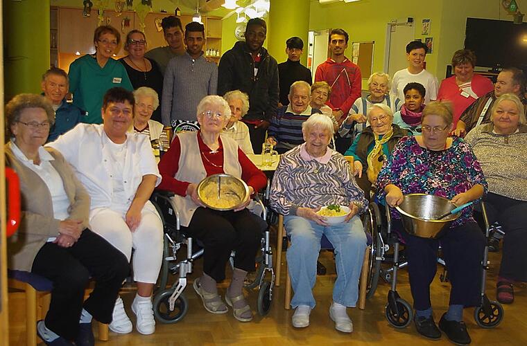 Junge Flüchtlinge waren im BRK-Seniorenhaus zu Besuch. Es gab Kontakte, eine Hausbesichtigung und ein leckeres Büffet.