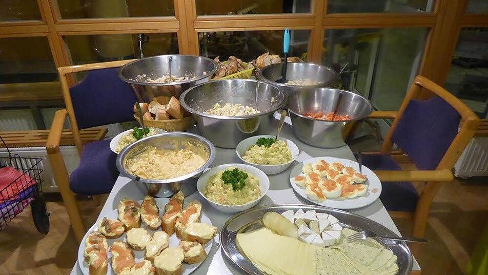 Verschiedene Salate, leckerer Käse-Aufschnitt, raffinierte Meerrettich-Eier und herzhafter Obatzda, selbst zubereitet nach einem alten Rezept - diese zum Teil recht fränkisch anmutenden Gerichte würde man sicherlich nicht auf Anhieb mit afrikanischen Essgewohnheiten in Verbindung bringen - und doch: Die fünf jungen Flüchtlinge aus Afghanistan und Mali schaufeln sich am Mittwochabend nicht nur ihre Teller voll, sondern haben die Leckereien auch vorher mit zubereitet. Da wurden Kartoffeln gekocht, geschält und kleingeschnitten, Nudeln al dente gegart, Dressings abgeschmeckt, der Obatzda noch einmal nachgeschärft. Die Eier bekamen ihre Meerrettich-Füllung und schließlich haben Souleymane, Rahman, Said, Ahmad und Musa noch alles appetitlich angeordnet, denn das Auge isst ja bekanntlich auch mit. Hilfe erhielten die jungen Männer im Alter von 16 bis 26 Jahren von den fleißigen Küchenfeen der Einrichtung, vor allem aber von den Bewohnern selbst - und einige von ihnen sind für sie schon liebgewordene Bekannte.