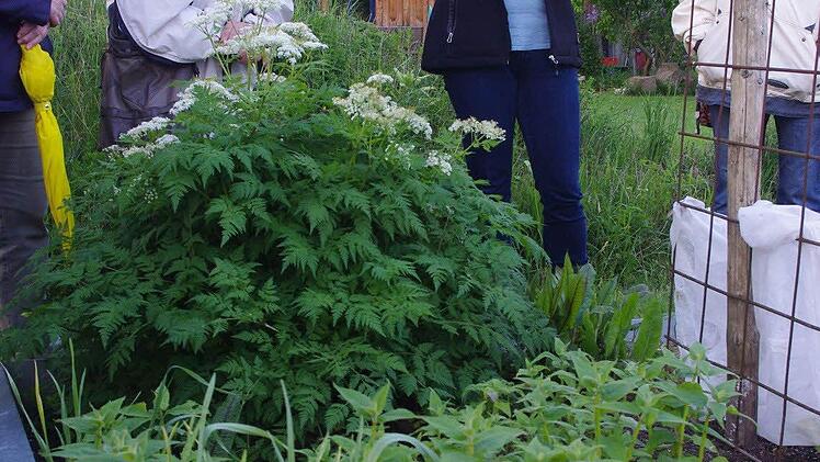 Die Dame klagt dann auch ihr "Leid": "Ich jäte Giersch immer. Aber es hat keinen Sinn: Den bekommt man nicht mehr los." Christina Zehnter pflichtet ihr bei: "Hat man den erst einmal im Garten, kommt er immer wieder." Den meisten Gärtnern ist der sich breit auswuchernde Giersch ein Dorn im Auge. Die Neukenrotherin hat mit ihm allerdings keine Probleme. Im Gegenteil: Sie schätzt Giersch als wohlschmeckendes Wildgemüse. "Heute gibt es noch leckere Giersch-Schorle mit Apfelsaft", kündigt sie an.