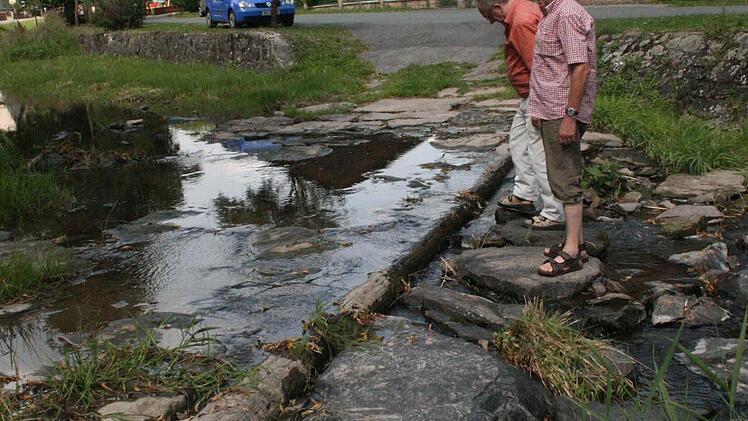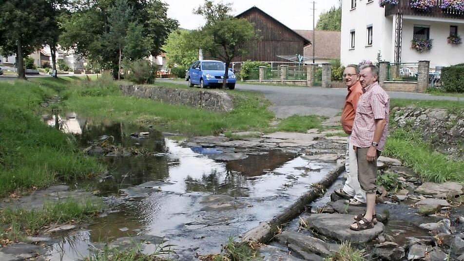 In der Zwischenzeit hatte Bürgermeister Förtsch die Giftinger zu einem Gespräch eingeladen und ihnen in Aussicht gestellt, dass ein neuer Steg gebaut werde, wenn die Bürger mithelfen. "20 000 Euro sind dafür in den Haushalt eingestellt", sagt der Bürgermeister. Es habe deshalb eine Verzögerung gegeben, weil der Haushalt der Gemeinde noch nicht genehmigt gewesen sei. Für die Bauarbeiten, die in Eigenregie der Giftinger erfolgen sollen, wurde eine Arbeitsgruppe ins Leben gerufen - mit Jürgen Hempfling und Herbert Böhm. "Die Höhenmesspunkte sind auch schon festgelegt. Jetzt kann es eigentlich bald losgehen. Muss es auch, denn lange können die Giftinger Fußgänger die Furt nicht mehr benutzen. Spätestens wenn es mehr regnet oder im Winter würden sie sonst nasse Füße bekommen.