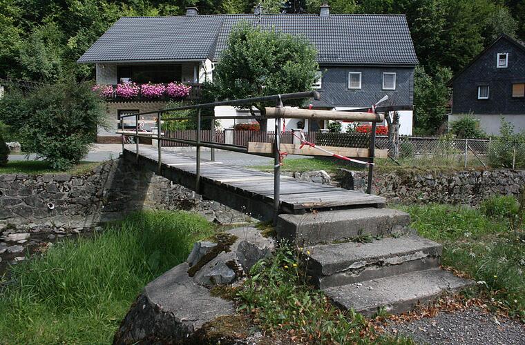 Eine schöne Abkürzung Der jetzt gesperrte Steg wird laut Herbert Böhm ziemlich häufig genutzt. Die Kinder aus dem unteren Dorf gehen über den Steg zum Spielplatz. Der Schulbus und ein Bäckereiverkaufsfahrzeug halten an der Lindenstraße in der Nähe des Stegs. Und an der Ortsstraße Am Mittelberg zu laufen ist für Fußgänger viel ungefährlicher als an der viel befahrenen Kreisstraße, die parallel jenseits des Flusses verläuft.