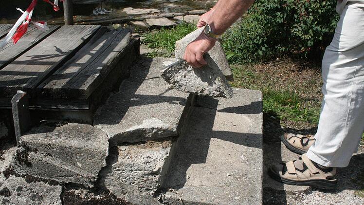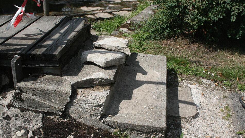 Sperrung seit 12. April Bewegung kam in die ganze Sache, als Herbert Böhm am 11. April dieses Jahres in der Gemeindeverwaltung vorstellig wurde und darauf hinwies, dass einige Bohlen des Stegs marode seien und ersetzt werden müssten. Bereits am nächsten Tag sah sich ein Ingenieur das Bauwerk an - mit dem Erfolg, dass es am gleichen Tag gesperrt wurde. Und das ist es immer noch.