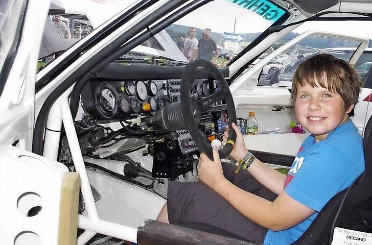 Bei dem Geschoss handelt es sich um den Original-Nachbau von der Firma Gehrt aus Eisenberg des Audi Quattro S1, der zu den bedeutendsten Fahrzeugen der Motorgeschichte zählt und für nicht wenige Rallyefans als irrstes Auto des Gruppe-B-Zeitalters gilt. In dem Flitzer, der von 0 auf 100 in 2,6 Sekunden und von 0 auf 200 in 10 Sekunden wie eine Rakete abgeht, fühlt sich Maximilian tatsächlich ein wenig wie ein echter Rennfahrer.