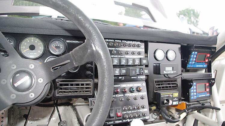 Auch das Cockpit lässt sich mit keinem "Straßenauto" vergleichen. Die Armaturentafeln sind von Anzeigen, Bedienknöpfen und Schaltern förmlich überwuchert. Der junge Auto-Fan sitzt aber auch nicht in einem normalen Straßenauto, sondern in einem wiederauferstandenen Power-Monster, mit dem am 4. Oktober 1985 Walter Röhrl in San Remo ganz oben auf dem Siegerpodest stand.