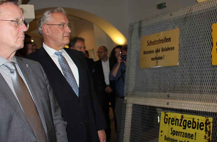 Beim Rundgang durch die Ausstellung wurden wohl bei den meisten Teilnehmern Erinnerungen wach. Ihm sei es, genauso wie damals, den Rücken heruntergelaufen, meinte Altlandrat Werner Schnappauf. Damals habe er zusammen mit der Vorsitzenden des Rates des Kreises Saalfeld, Edith Ludwig, am Falkenstein das Band durchschnitten. "Das war so ergreifend!"