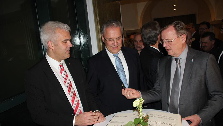 Innenminister Joachim Herrmann erinnerte an seine Fahrten im Interzonenzug von München nach Berlin, vorbei an Ludwigsstadt und Probstzella. Vor der Grenze hatte er wegen den Grenzkontrollen immer ein mulmiges Gefühl.