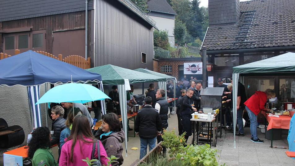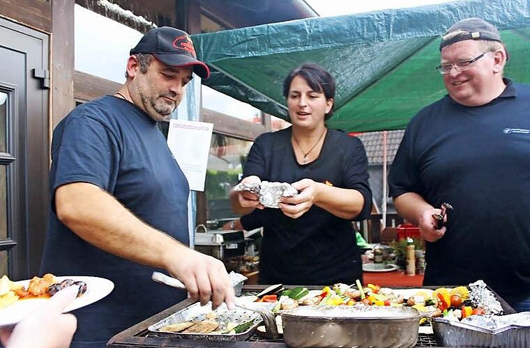 Die obere und die untere Terrasse des Gasthauses Löffler waren ebenso wie die Gastwirtschaftsräume überfüllt, spontan wurden Bänke in Garagen gerückt. Man sah Helfer am Grill, am Ausschank, die teilweise ganz schön ins Schwitzen kamen. Bedienungen sorgten für den entsprechenden Service. Die "Blechrebellen" sorgten für die musikalische Umrahmung. Die Besucher waren begeistert von der kulinarischen Vielfalt. Und auch der einsetzende Regen konnte die Stimmung nicht trüben.