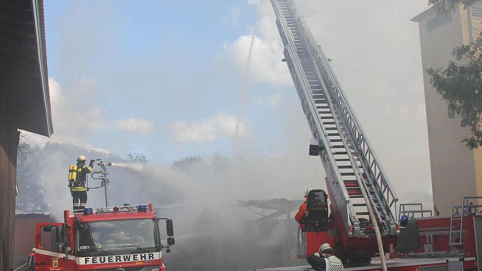 Ein Großaufgebot an Feuerwehrleuten aus den umliegenden Orten war im Einsatz, um die Flammen einzudämmen. Ein Übergreifen auf benachbarte Gebäude konnte verhindert werden, die Halle brannte jedoch vollständig ab. Der Rauchpilz war bis Weißenbrunn und Neuses zu sehen.