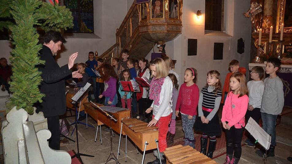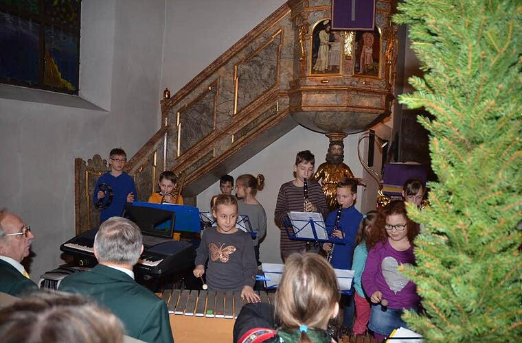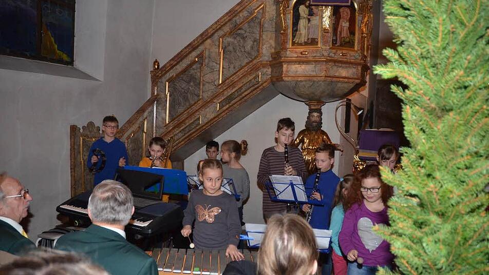 Die "Brasskids" der Grundschule Weißenbrunn unter Leitung von Marco Plitzner (sie wurden von den Lehrkräften Käthe Thümlein, Elfi Lurz und Schulleiter Ralf Knöchel unterstützt) begeisterten nicht nur mit ihren einstudierten Liedern, "Eine Kerze leuchtet weit" und "Advent, Advent", sondern auch die strahlend leuchtenden Augen zeugten von großer Freude, vor so großem Publikum das erlernte Können an Instrumenten und mit ihrer Gesangsstimme vortragen zu dürfen.