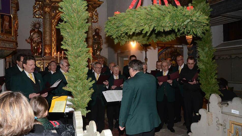 Aus der Höhe von der Empore erschallte der "Andachtsjodler" als andächtiger Kniefall vor dem geborenen Heiland. Stefan Porzelt, Christopher Schmidt, Fabian Tübel (alle Tenorhorn), André Patzelt (Bariton) und Lothar Beyerlorzer (Tuba) verstanden es, diesen Jodler für Chorsänger und auch den "Hörnerruf" auf ihren Instrumenten herzergreifend zu intonieren.