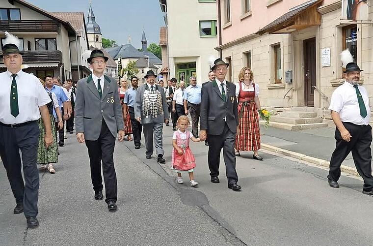 Anschließend führt der Weg zusammen mit dem Jungschützenkönig Lukas Beetz zur Pfarrkirche Sankt Bartholomäus, wo um 19 Uhr der Festgottesdienst von Pfarrer Thomas (Urlaubsvertretung für Pater Helmut Haagen) zelebriert wird. Um 20 Uhr beginnt ein Dorfabend im Festzelt am Schützenplatz, bei dem der Musikverein Grössau-Posseck aufspielen wird.