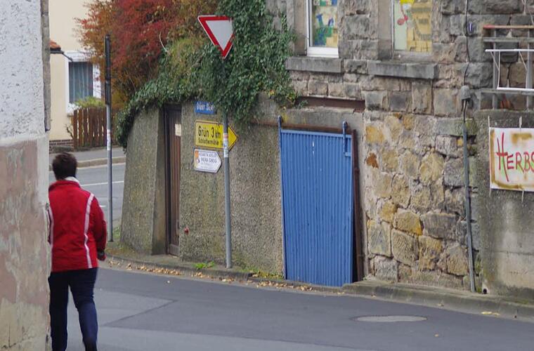 Ein wuchtiger Tanklastwagen fährt die Grüner Straße hoch. Links wie rechts sucht ein Fußgänger vergeblich nach einem Gehsteig, auf dem er sich sicherer fühlen würde. Und je näher er an die Engstelle im Einmündungsbereich zur B 85 herankommt, umso heikler wird der Weg in Richtung Ortskern. Kurz vor der Bundesstraße gibt es eine schlecht einsehbare Engstelle. "Am besten wechselt man davor erst auf die rechte Seite", erklärt Kurt Weichmann seine Strategie, wie er mit heiler Haut um den kleinen Knick in der Straße kommt. Von dort schaut er vorsichtig ums Eck, ehe er ein paar Meter später wieder auf die linke Seite zurückkehrt.