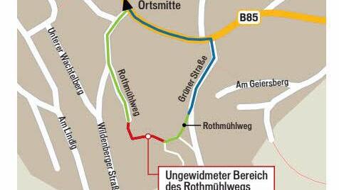 "Und der Verkehr nimmt zu", unterstreicht Weichmann. Seine Schlussfolgerung: "Das kann kein Dauerzustand sein." Die Wurzel allen Übels sehen der Anwohner und sein Mitstreiter Jürgen Thümlein darin, dass die Gemeinde sich nicht stark genug für den Erhalt des Rotmühlweges als öffentlicher Fußweg stark gemacht habe. Dieser habe lange als sichere Verbindung für Fußgänger aus der Grüner Straße in den Ort gedient. Die Gemeinde habe es verpasst, die Anwohner rechtzeitig aufzuklären. Außerdem sei der Weg nicht in Schuss gehalten worden.
