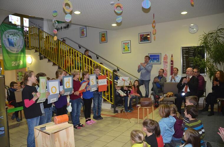 Bemerkenswert war der Vortrag des gemeinsam komponierten Schulsongs, in dem das "Lernen wie im Paradies" beschrieben wird. So ist es nicht verwunderlich, dass man erneut, nach 2013, den Status "Modus-Schule" nach der externen Evaluation 2018 um weitere fünf Jahre verlängert bekam. Mit der Bewerbung zum internen Schulentwicklungsinnovationspreis, mit der man 2017 den zweiten Platz erreichte, habe man viel Erfahrung sammeln können, meinte Schulleiter Ralf Knöchel. Die Schüler stellten ihre eigene Interpretation des Begriffes "Modus- Schule" auf selbst gefertigten Schaublättern vor: "Miteinander - offen - dafür - unkompliziert - Spitze" lauteten die Attribute für ihre Schule.
