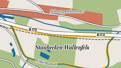 Der Verlauf der Wilden Rodach, die sich zwischen Fels und Schnappenhammer mehrmals unter der Bundesstraße durchschlängelt, kommt dem Vorhaben Staubecken sehr gelegen. Denn direkt oberhalb des Floßstartplatzes bei Schnappenhammer wäre kein Platz für ein Becken. Der Bach Thiemitz kommt aus dem Thiemitztal und fließt in die Wilde Rodach, die aus Richtung Schübelhammer/Fels kommt. Die Wilde Rodach fließt bei Thiemitz nach Norden, nach einer kurzen Strecke gleich wieder nach Süden, dann nach Westen parallel zur Bundesstraße, um kurz vor dem Floßteich Schnappenhammer wieder nach Norden abzubiegen. Nach dem Start der Floße geht's noch mal unter der Bundesstraße durch.
