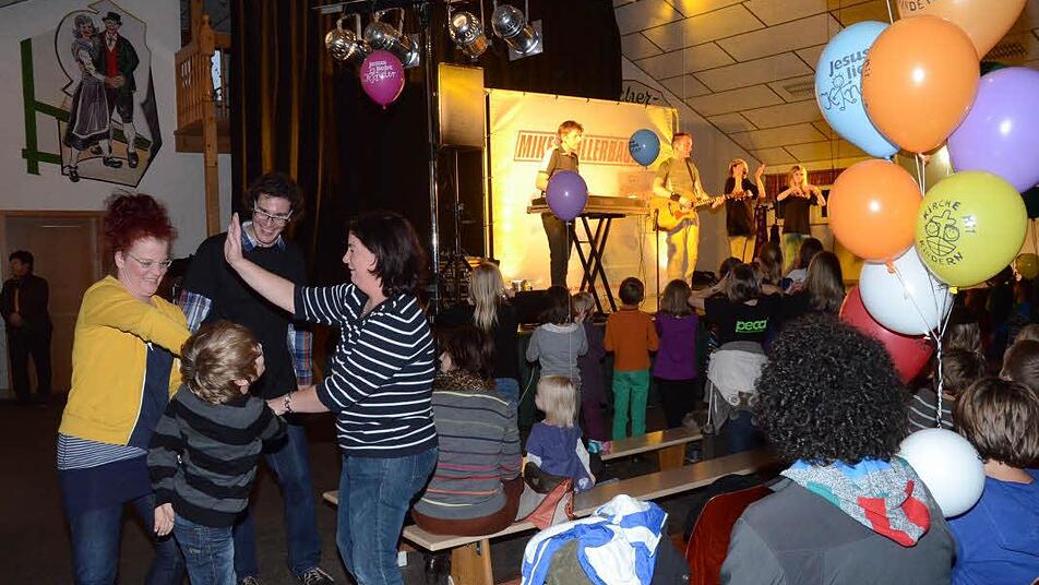 Mike Müllerbauer brachte am Samstag mit seinem mitreißenden Mitmach-Konzert die Zecherhalle zum Beben. Überall bunte Luftballons mit der Aufschrift Kirche mit Kindern, strahlende Kinderaugen, freudig eingestellte Erwachsene und darunter die katholischen und evangelischen Geistlichen.