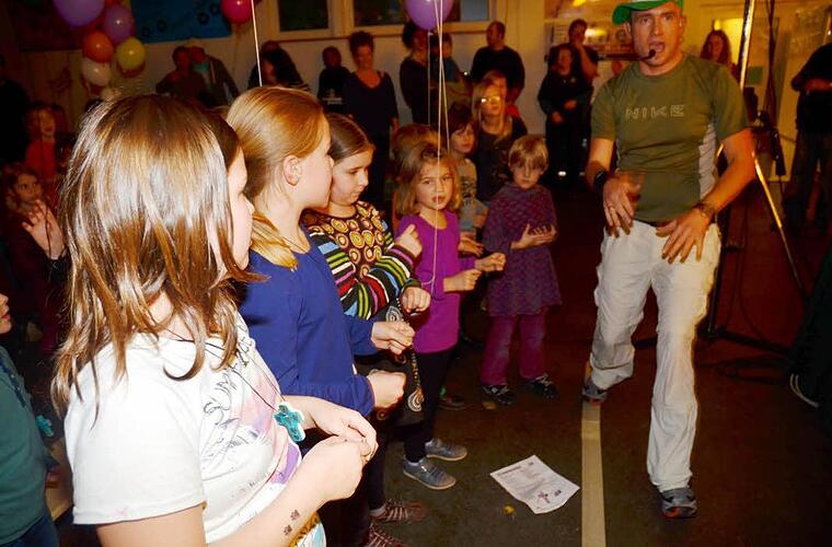 Beim Familiennachmittag der katholischen und evangelischen Pfarreien des Haßlachtals ging es in der Zecherhalle hoch her. Für Stimmung sorgte der Entertainer und Liedermacher Mike Müllerbauer.