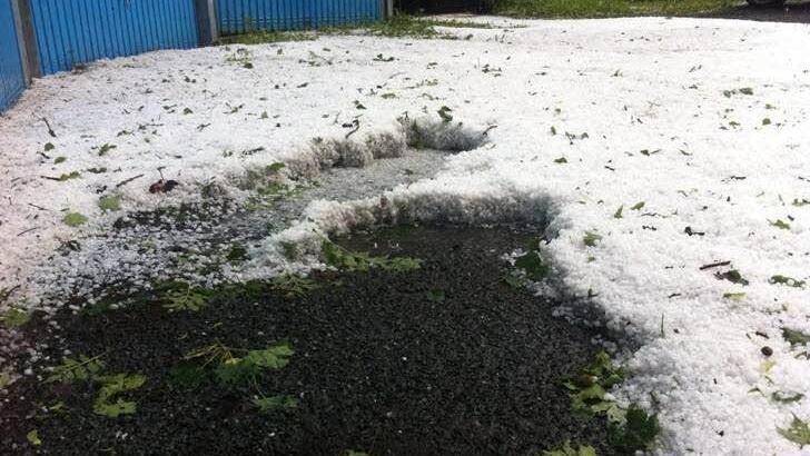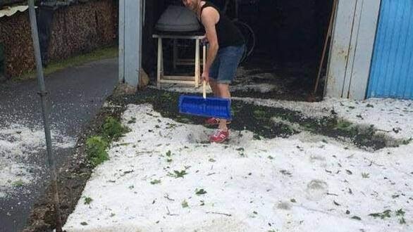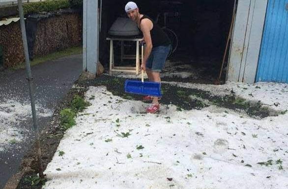 Der Nordhalbener Marktgemeinderat Kevin Wunder musste am Dienstag zur Schneeschaufel greifen. Vor seiner Garage in der Kronacher Straße war eine dicke Schicht aus Hagelkörnern, wie er uns auf den Bildern beweist.