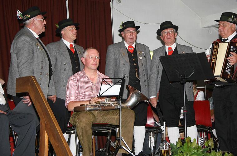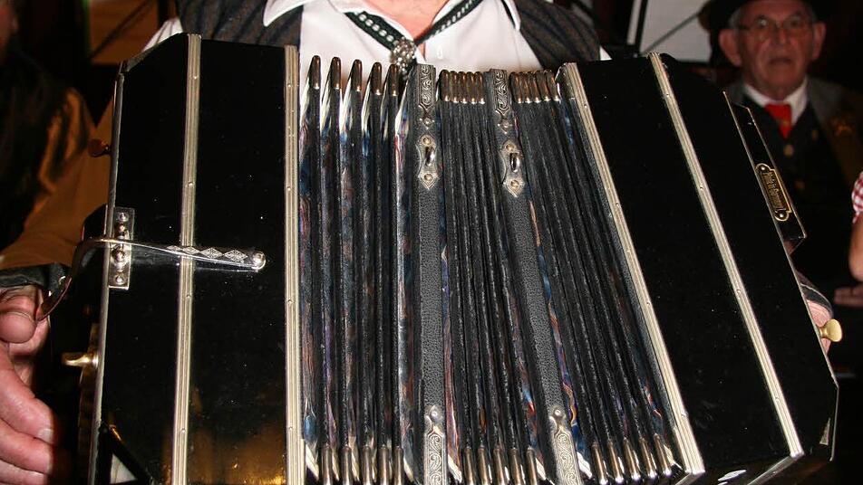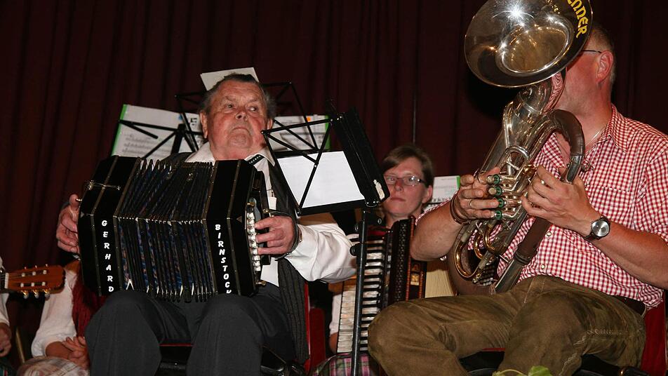 Und als i-Tüpfelchen hatte Kreisheimatpfleger Roland Graf, der den Abend immer wieder mit ur-fränkischen Gschichtla auflockerte, auch noch das Duo Günter Fröba mit seiner Konzertina und Alexander Klug mit einer Basstuba gewinnen können. "Die wertvollste Konzertina, die ich habe, ist das nicht. Das war die, die ich von meinem Opa geschenkt bekommen habe", erzählt der inzwischen über 75-jährige Fröba. "Aber die habe ich meinem Enkel geschenkt. Die Konzertina, auf der ich heute Abend spiele, ist aus der DDR", kennt Fröba das Geheimnis seines seltenen Instrumentes in ES-Stimmung.