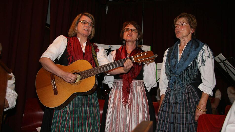 So mancher staunte, dass die Kronicher Maala sogar ein Lied von einem Leichenwagen im Repertoire hatten - und man nach Herzenslust darüber lachen konnte. Und natürlich hinterließen auch die Betrachtungen der Kronicher Maala von "A echter Frank" so manches Schmunzeln auf den Gesichtern der Zuschauer, wenn sie vom Nationalgericht (Bratwürste) sangen. Mit viel Charme brachten Monika Tschernitschek (Gitarre), Vroni Heider, Brigitta Schmidt und Iris Gareis ihre fränkischen Lieder dar.